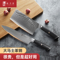 拓黑马刀具套装大马士革钢菜刀家用厨师专用切肉切片刀厨房套装组合 黑马大马士革刀具两件套