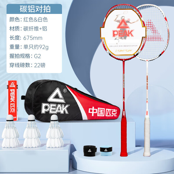 匹克碳素羽毛球拍对拍耐打超轻成人学生双拍2支套装已穿线6球2手胶