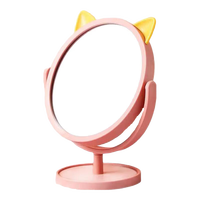 猫耳台式化妆镜梳妆台镜子高清桌面宿舍学生梳妆镜一体家用公主镜 橙色