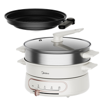 美的(Midea)电火锅多功能锅一锅多用分体式电煮锅火锅专用锅多用途电蒸锅炖蒸煮电锅一体电热锅炒煎煎涮烤肉 9.5L 总容量【配煎烤盘+蒸笼】行业爆款