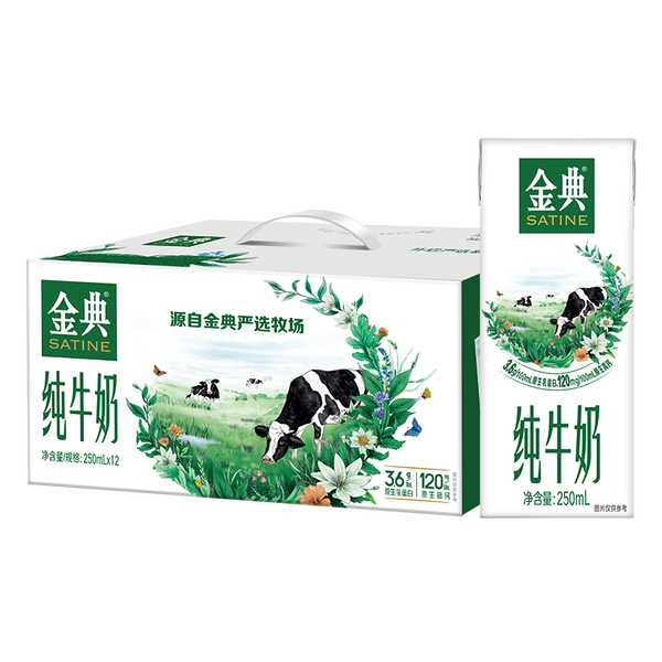 金典(SATINE)纯牛奶 3.6g乳蛋白 120mg高钙 牛奶整箱送礼 金典纯牛奶250ml*16盒*1箱9月产