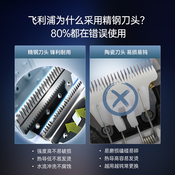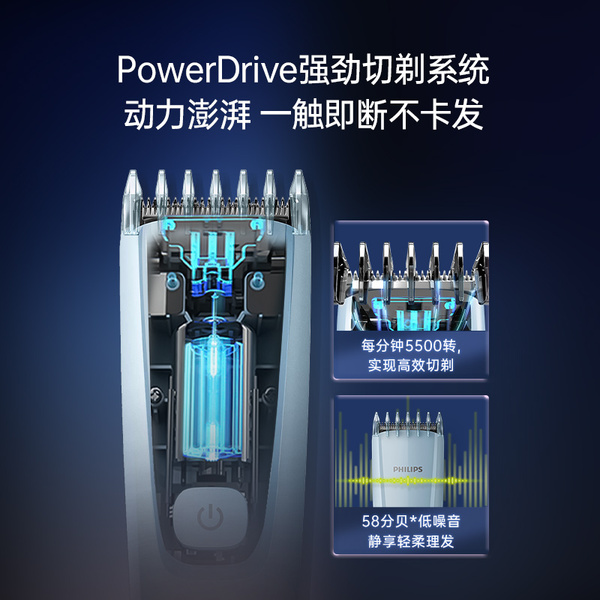 飞利浦(PHILIPS) 理发器 家用电推剪 成人儿童婴儿充电插电两用电推子 电动理发剪 HC3688 深蓝