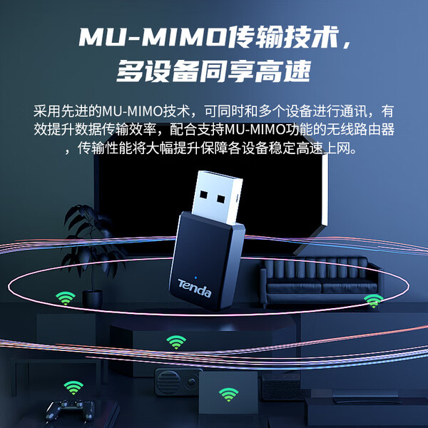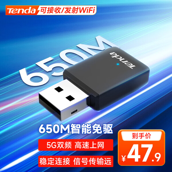 Tenda腾达USB无线网卡智能免驱AC650 台式机专用WiFi接收器5G双频网卡 笔记本电脑外置网卡WiFi发射器