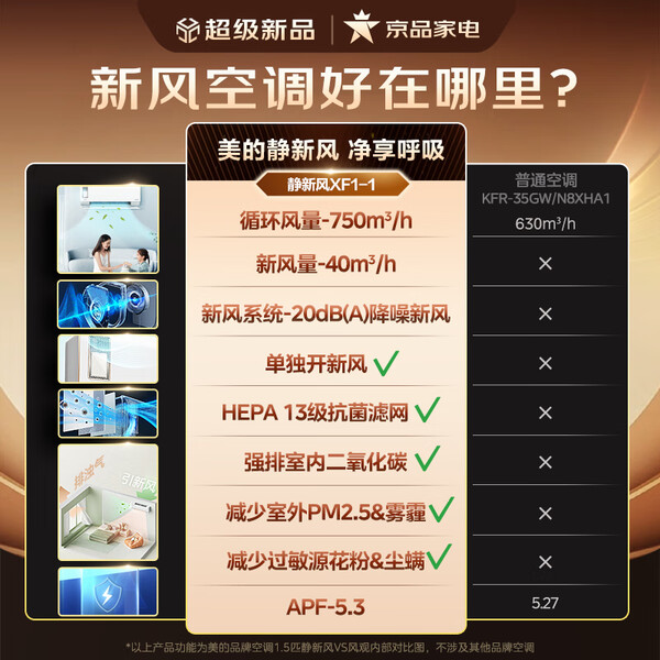 小米(MI)米家1.5匹 新风空调 40m³/h新风量 舒适 空调挂机KFR-35GW/F3A1【国家补贴20%】整机十年质保