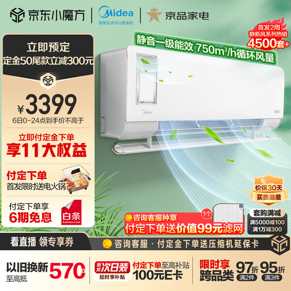 美的(Midea)空调挂机1.5匹/2匹酷省电2025款 新一级能效变频冷暖家用自清洁壁挂式 国家补贴 家电以旧换新 大1.5匹 一级能效 【酷省电】