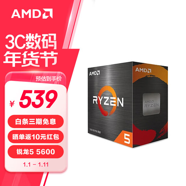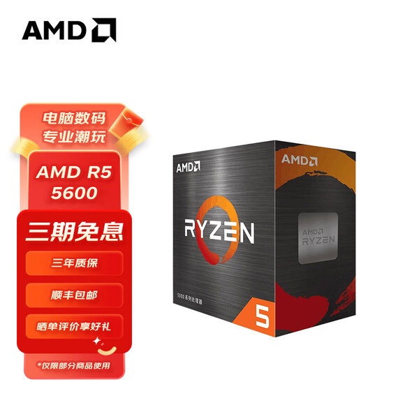 AMD 锐龙 CPU 7nm 65W AM4接口处理器 R5 5600(散片)