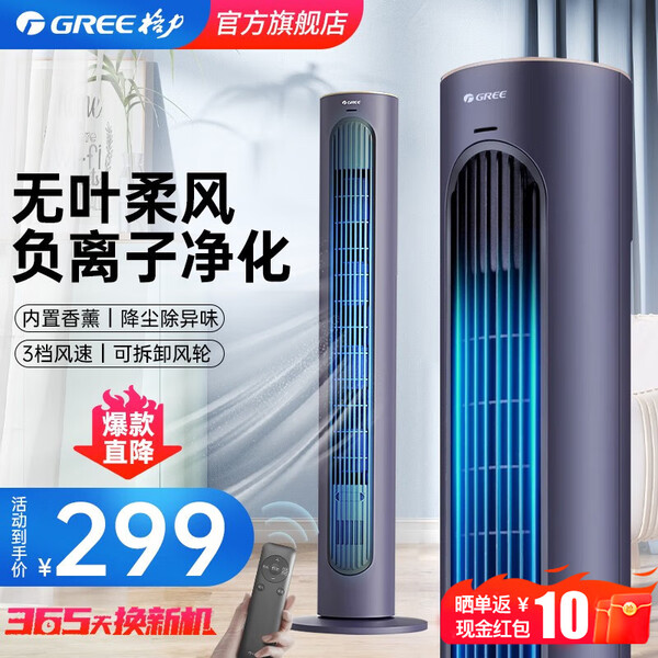 格力(GREE)电风扇家用落地塔扇无叶风扇轻音循环轻柔风扇 负离子净化定时遥控款 FL-08X63Bg 负离子净化/特色香薰功能-FL-08X63Bg