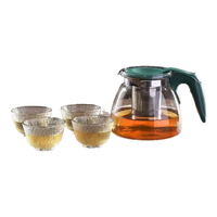茶壶泡茶器整套茶具茶水分离玻璃耐热泡茶壶花茶套装茶漏 绿把一壶四杯 1000ml