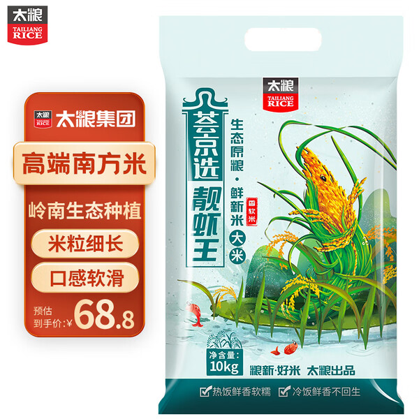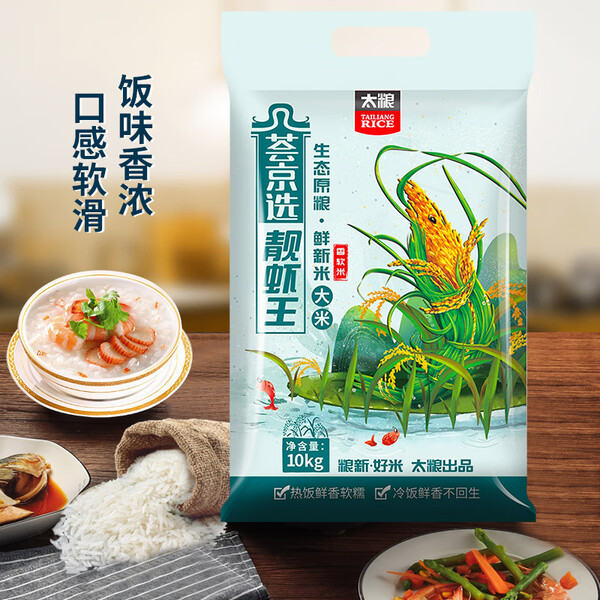 太粮 荟京选靓虾王油粘米出身于“靓虾王”家族,是纯正的岭南优质油粘米,油粘米是南岭地区的传统名米,因煮熟饭后粒莹润油亮,鲜香软糯,入口回甘,规格:10kg。
