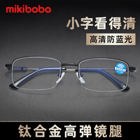 mikibobo老花镜 钛合金 弹性好不变形 商务 半框防蓝光眼镜 普通/礼盒装 钛合金半框1010款 高清防蓝光老花镜 100°