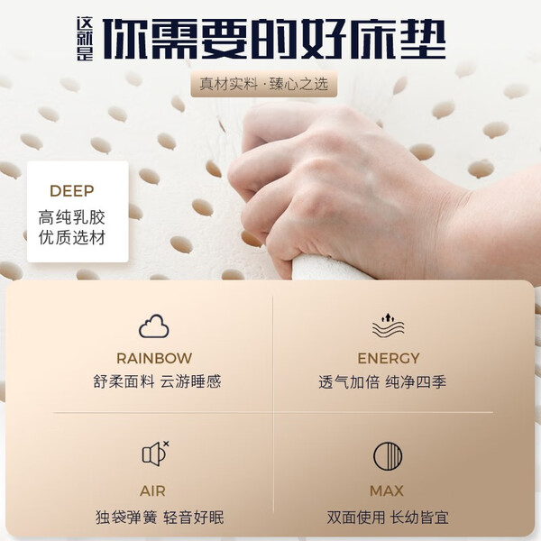 喜临门净眠乳胶床垫轻音独袋弹簧羊毛除甲醛床垫 电动床垫温控 净眠系列 M60【除甲醛/整垫0胶/软硬可调】 1.8*2米(指定款式闪送)