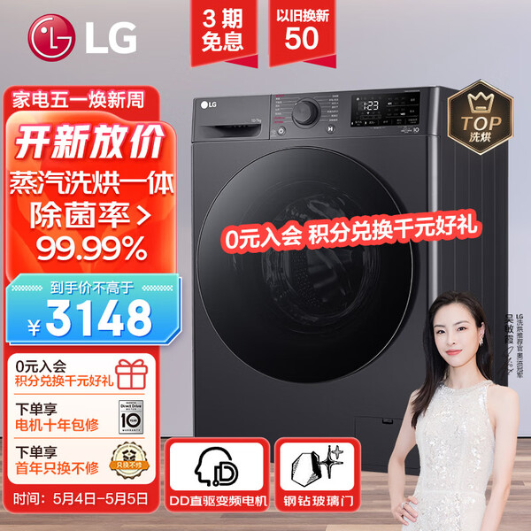 海尔【25年新品】小红花套系37E全自动直驱滚筒洗衣机 超薄10公斤蓝盾除菌慕斯冲浪洗国补20% 洗脱一体:慕斯冲浪洗+直驱+智能投放+双效除菌