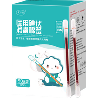 医用碘伏棉签新生婴儿肚脐带护理皮肤伤口杀菌消毒液脱脂棉棒棉签 【50支】便携应急