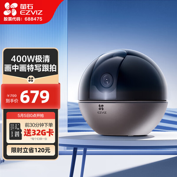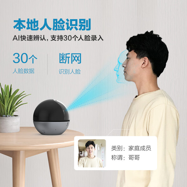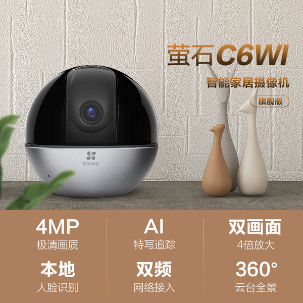 萤石(EZVIZ)C6WI智能400万高清无线云台家用手机监控摄像头 AI特写追踪 人脸识别 婴儿看护器