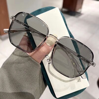 Erilles 韩版TR90方框眼镜架 同款近视眼镜男女情侣款潮流镜架可配近视 透明灰 156变色两用镜片