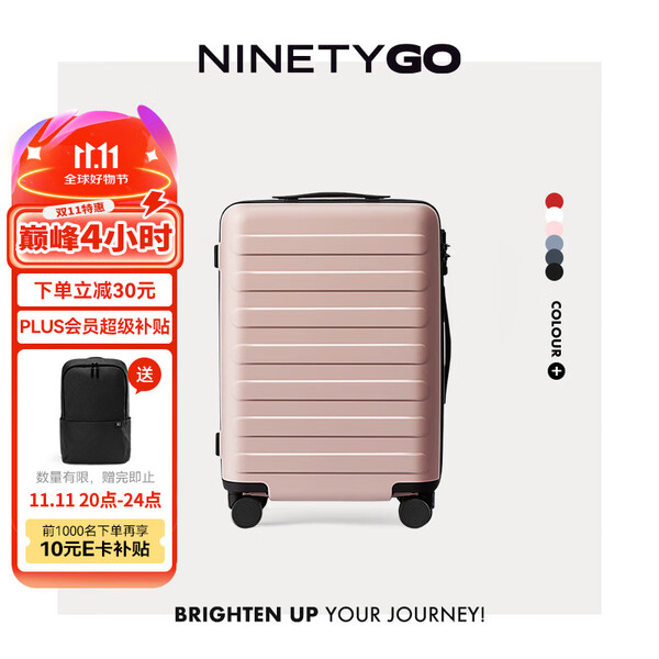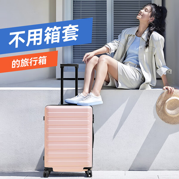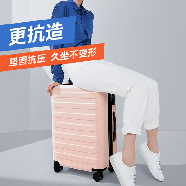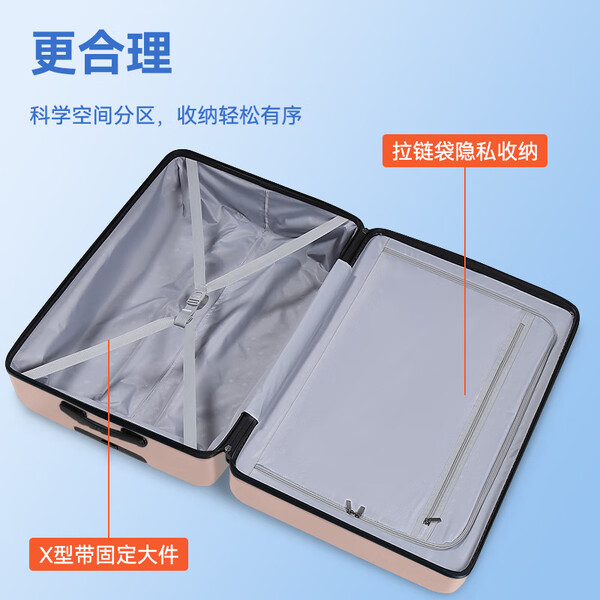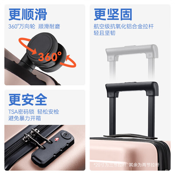 90分PC旅行箱轻质铝框行李箱24英寸防刮商旅两用拉杆箱登机箱薄暮粉
