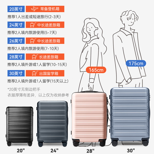 米家小米行李箱20英寸拉杆箱可登机箱万向轮旅行箱男女小型密码箱黑色