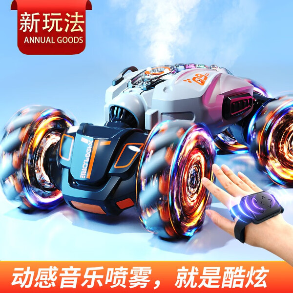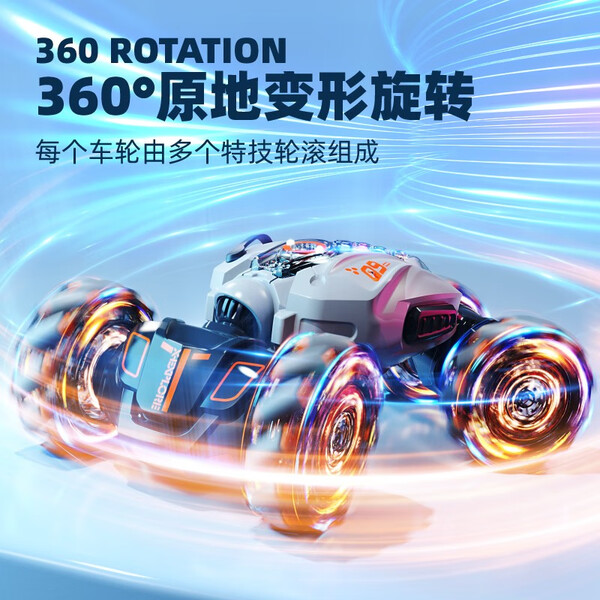 DEERC遥控车3-6岁儿童玩具车特技赛车模型汽车漂移翻斗车男孩生日礼物 【动感音乐+特技翻滚】珍珠白