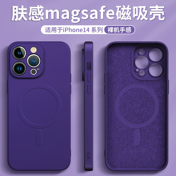 狸贝多适用苹果MagSafe磁吸肤感保护壳苹果15ProMax仿液态硅胶直边柔软手感手机壳防摔14/13/12/11 【莓果紫】磁吸保护壳 iPhone 14 Plus