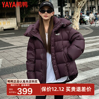 鸭鸭(YAYA)羽绒服女冬季新款短款连帽加厚气质90鸭绒宽松休闲外套DS 浆果紫色 S (155)