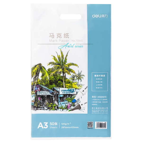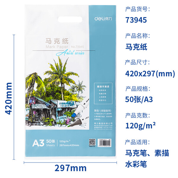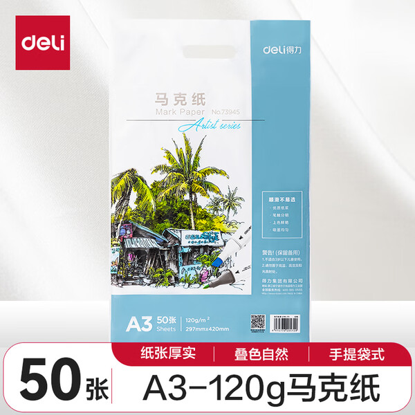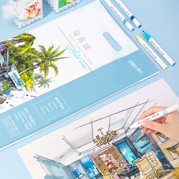得力(deli)4K水粉纸20张加厚180g美术绘画专用画画纸涂画填色美术颜料绘画纸73618双十一