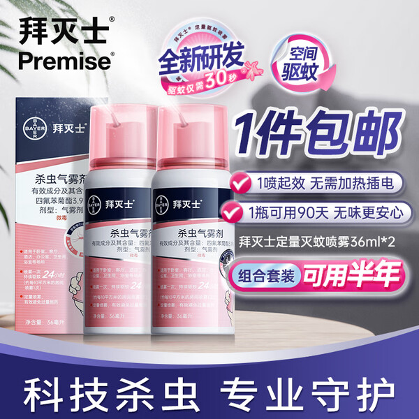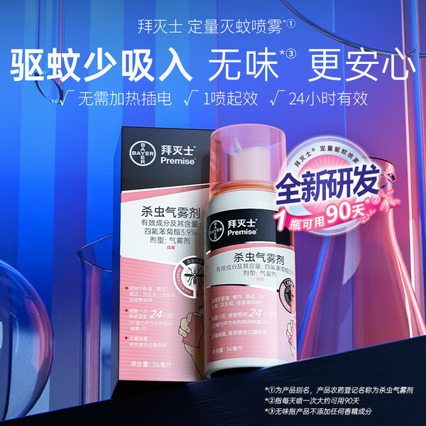 拜灭士拜耳灭蚊器气雾剂驱蚊防蚊虫杀虫剂喷雾小飞虫叮咬液水 【回购80ml】定量杀虫剂喷雾