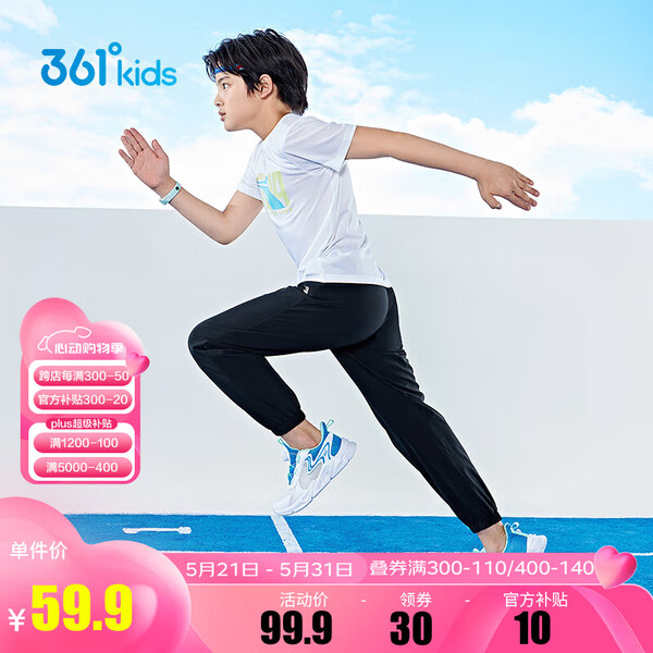 361°童装男女童梭织长裤夏季中大童运动速干裤3-12岁儿童防蚊裤 【梭织】经典黑 130