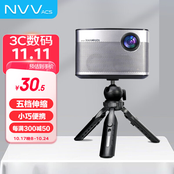 鲸米(JINGMI)投影仪支架加厚铝合金落地托盘三脚架TS150家用办公便携移动伸缩三档可调节高度
