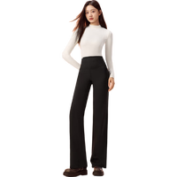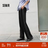 森马(Semir)休闲裤女肌理雪尼尔撞色长裤显腿长冬遮肉显瘦宽松阔腿裤复古 黑色90001 XS