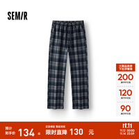 森马(Semir)休闲裤女冬格子加绒长裤宽松2025新款盐系慵懒复古潮流阔腿裤 蓝绿色调00384 XS