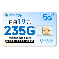中国移动移动流量卡5G全国不限速手机卡电话卡低月租无限流量卡大流量上网卡大王卡 宝藏卡丨19元185G全国通用流量丨全国可发