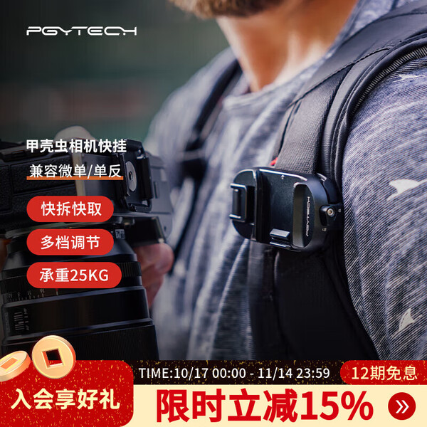 PGYTECH甲壳虫相机快挂单反微单相机背包夹腰带腰挂快枪手action/gopro/insta运动相机背带扣肩带肩挂