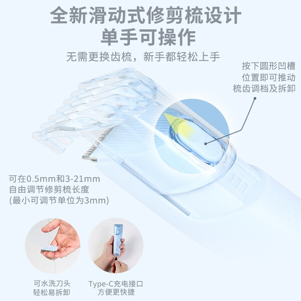 米家理发器儿童版 小米宝宝吸发理发器 陶瓷动刀全身水洗 圆珠包覆护头皮 家用婴童理发剃头电推子