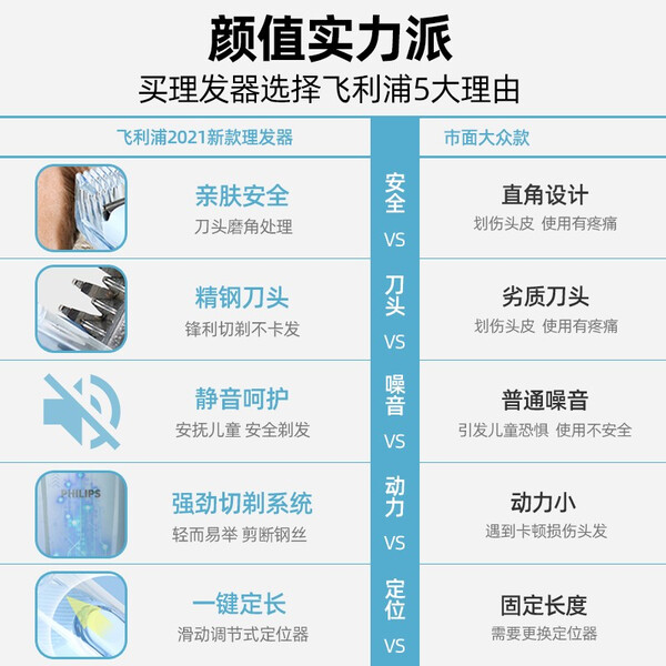 飞利浦(PHILIPS) 理发器 家用电推剪 成人儿童充电式电推子 电动理发剪 QC5130&QC5131随机发货 全家适用