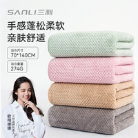 三利浴巾 A类珊瑚绒柔软吸水菠萝格浴巾干裹巾 70*140cm 咖色