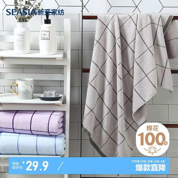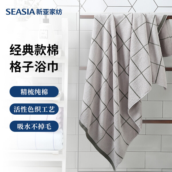 三利浴巾 A类珊瑚绒柔软吸水菠萝格浴巾干裹巾 70*140cm 灰色