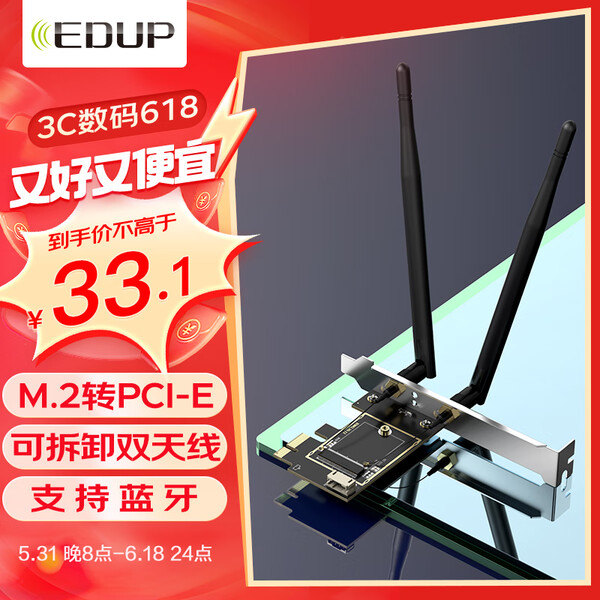翼联(EDUP)AX210网卡笔记本 WIFI6模块千兆三频5374M笔记本内置无线网卡M2接口WIFI信号无线接收器+蓝牙5.3