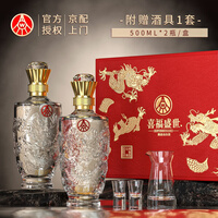 五粮浓香五粮液股份出品 官方授权 52度优级 浓香型白酒 喜福盛世 52度 500mL 2瓶 礼盒装(内含酒具)