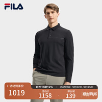 FILA 斐乐官方男子针织长袖POLO衫2025秋季新款时尚休闲通勤上衣 正黑色-BK S 165/88A/S