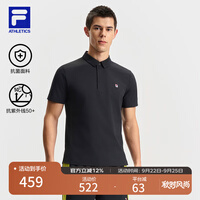 FILA 大满贯POLO|斐乐官方男装针织POLO2025夏新款网球运动抗菌短袖 深黑-BK S 165/88A/S