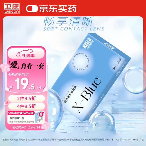 BAA半年抛女2片蓝色美瞳带度数彩色隐形眼镜百搭小直径轻混血正品