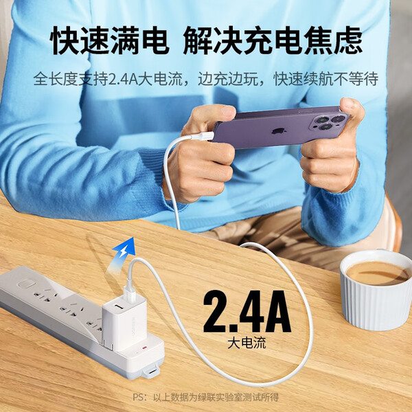 绿联【MFi认证不弹窗】苹果充电线快充数据线USB to Lightning适用iPhone14plus/13/12/11手机 USB充电线-【云朵白】-1米 苹果MFi认证USB-A转Lightning充电线