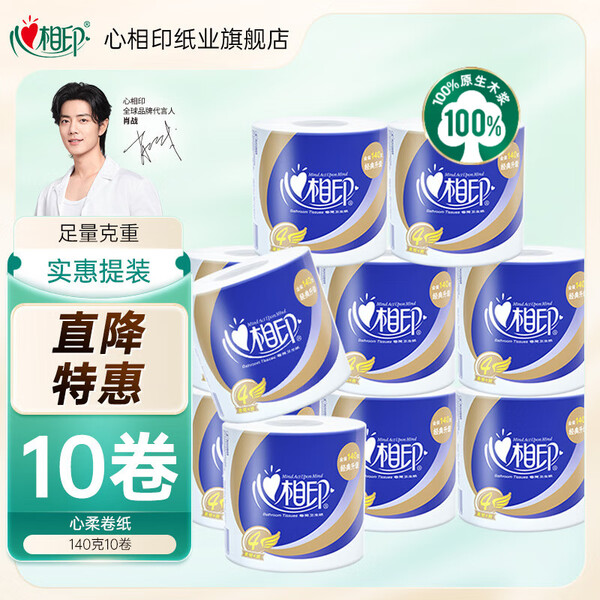 心相印卷纸 心柔有芯 4层180g*27卷卫生纸巾大克重 卷筒纸 整箱
