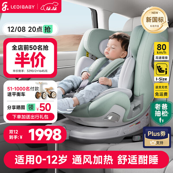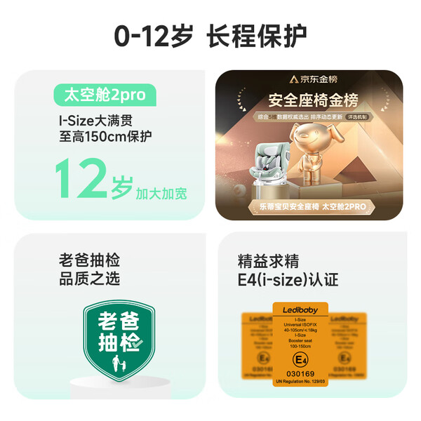 ledibaby乐蒂宝贝儿童安全座椅0-4-12岁汽车用婴儿宝宝座椅车载可坐可躺 太空舱2Pro旗舰版【松霜绿】
