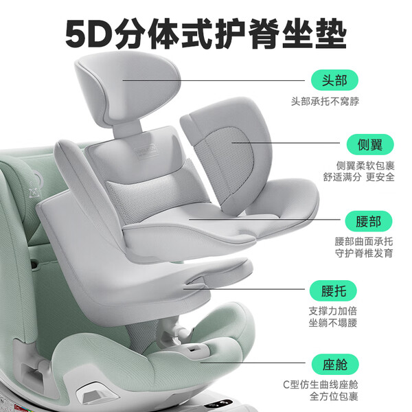 虎贝尔E360pro儿童智能通风安全座椅0-12岁宝宝婴儿【龙队同款】 【新国标】E360pro蜂巢透气舱-绿格
