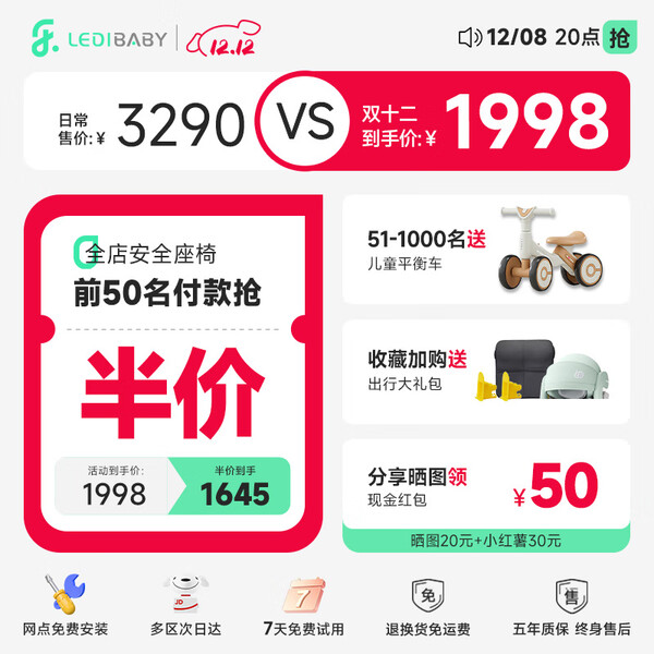 京东京造 儿童安全座椅汽车0-6-7岁婴儿宝宝i-Safe通风加热星际舱舒享版蓝