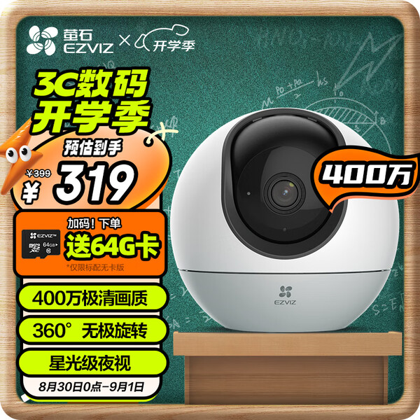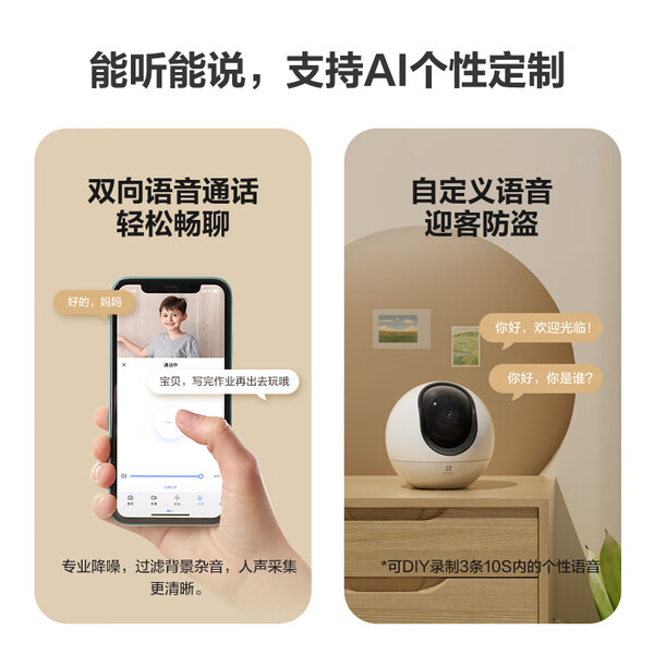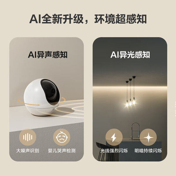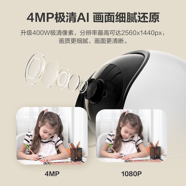 萤石(EZVIZ)C6WI智能400万高清无线云台家用手机监控摄像头 AI特写追踪 人脸识别 婴儿看护器