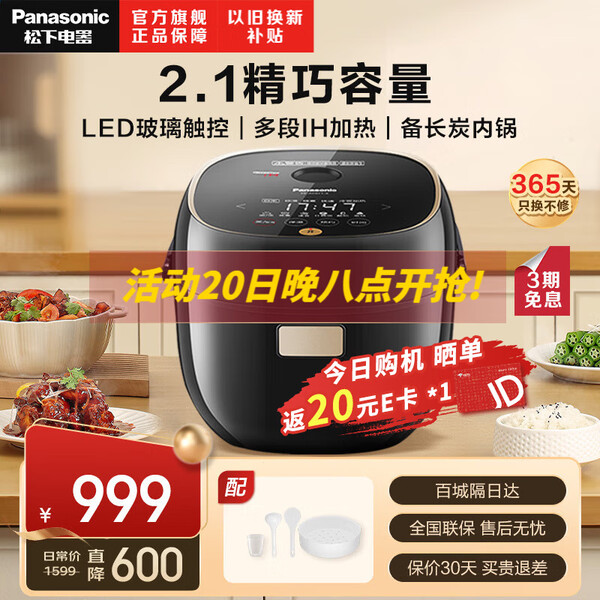 松下(Panasonic)【国家补贴】电饭煲3-4人智能预约电饭锅家用多功能煮饭不粘锅备长炭3.2升容量以旧换新SR-DP107-N