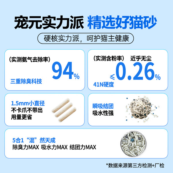 petshy百宠千爱 植物混合猫砂 强吸水不粘底无尘除臭木薯猫砂 植物混合猫砂2.5kg*1包