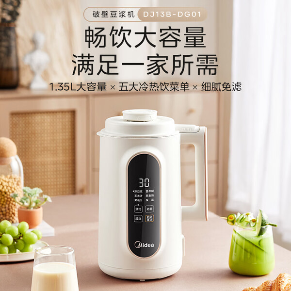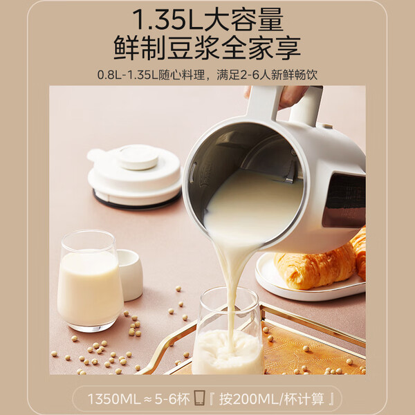 西屋豆浆机2025新款家用冷热双打榨汁机316L不锈钢免泡免滤破壁机13G20 杏仁白 1.35L